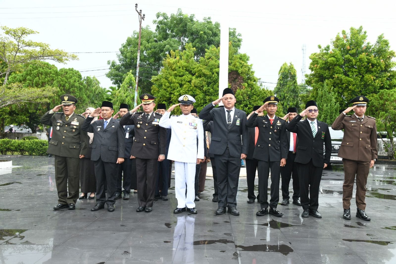 Upacara yang berlangsung khidmat ini dipimpin langsung oleh Komandan Kodim (Dandim) 0303 Bengkalis diwakili Mayor Inf Suratno ini juga diikuti Wakil Bupati Bengkalis H Bagus Santoso, para pejabat vertikal, sejumlah pejabat dilingkungan Pemerintah Kabupaten Bengkalis, para perwira, prajurit TNI, dan anggota Persit Kartika Chandra Kirana Kodim 0303 Bengkalis.