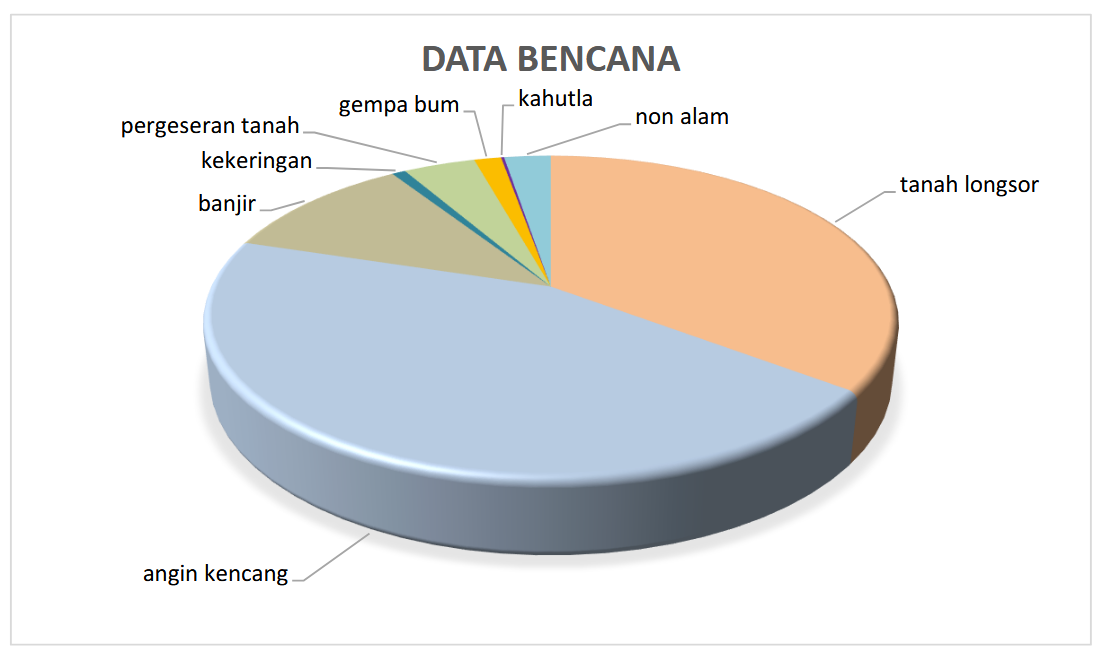 Bencana Alam yang terjadi di Wilayah Kabupaten Bogor Selama Tahun 2025 Tercatat dari 01 Januari sampai dengan 31 Agustus 2025 sebanyak 1.184 kejadian yang terjadi dari tanah longsor 418 kejadian, banjir 131 kejadian, kahutla 2 kejadian, angin kencang 527 kejadian, kekeringan 9 kejadian, pergerakan tanah 48 kejadian dan gempa bumi 18 kejadian, non alam 31 kejadian dari semua kejadian tersebut BPBD telah melakukan penanganan kedaruratan sebagaimana mestinya seperti pertolongan, penyelamatan korban bencana, evakuasi korban dan puing, bahan material lainnya akibat bencana.