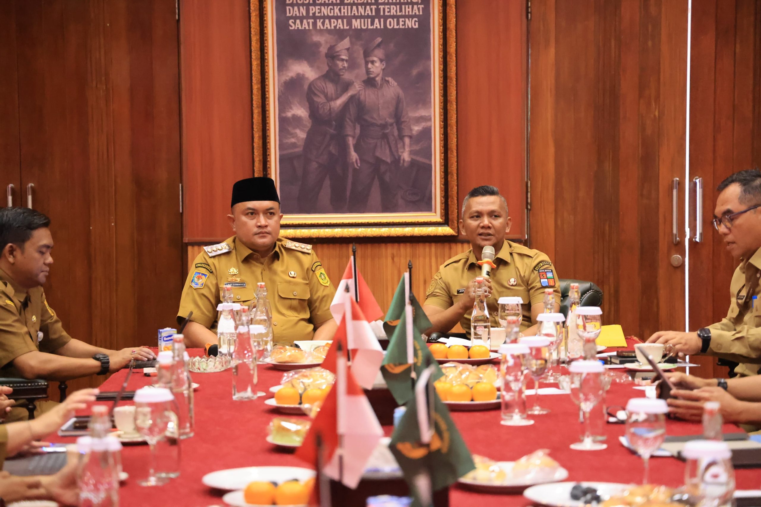 Bupati Bogor Rudy Susmanto bersama Wakil Wali Kota Bogor Jenal Mutaqin memperkuat kolaborasi pengelolaan sampah regional menyusul rencana pembangunan fasilitas Pengolahan Sampah Menjadi Energi Listrik (PSEL) serta kebutuhan perpanjangan Perjanjian Kerja Sama (PKS) TPA Galuga, yang dibahas melalui rapat di Pendopo Bupati, pada Senin (24/11/25).