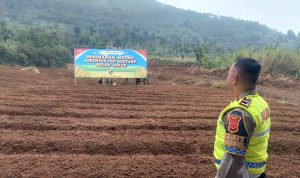 Petugas kepolisian turut melakukan pengecekan langsung di lapangan guna memastikan seluruh persiapan berjalan optimal. Kehadiran aparat di lokasi juga bertujuan untuk menjamin keamanan serta kelancaran kegiatan penanaman serentak agar dapat berjalan sesuai rencana.