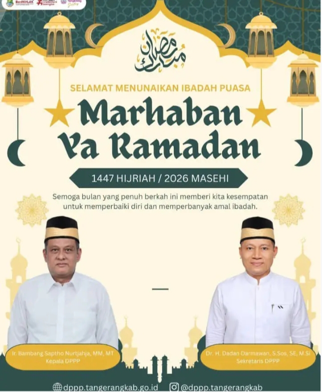 Ir. Bambang Saptho Hurtjahja, Kepala Dinas Perumahan Permukiman dan Pemakaman (DPPP) Kabupaten Tangerang, beserta jajaran mengucapkan Selamat Menunaikan Ibadah Puasa 1447 Hijriah / 2026 Masehi kepada seluruh umat Islam di Kabupaten Tangerang dan Indonesia, Rabu (18/02/2026).